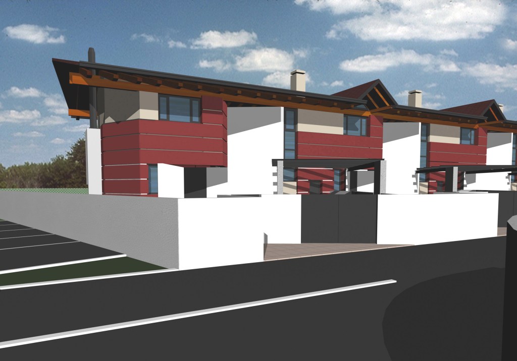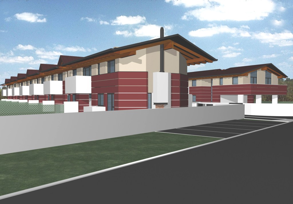 L’intervento riguarda la realizzazione di un complesso residenziale privato composto da dieci unità abitative a schiera e una palazzina di otto appartamenti, su un terreno di 5.800 mq. I fabbricati in progetto sono tre: due costituiti da case a schiera, caratterizzate da corpi di fabbrica uniformi e da incavi che segnano gli ingressi, con coperture a capanna regolari scandite dalla ripetitività degli abbaini, e una palazzina composta da tre corpi rettangolari collegati tra loro da due vani scala con tetto piano, con porticati laterali, dove al piano terra sono presenti posti auto, accessi e due appartamenti, mentre al piano superiore trovano spazio le restanti sei unità abitative. Tutti gli edifici si sviluppano su due livelli per le abitazioni, con la zona giorno al piano terra e la zona notte al piano superiore, garantendo funzionalità e comfort abitativo. L’intero complesso è realizzato con strutture verticali e orizzontali in calcestruzzo armato, blocchi laterizi, solai in laterocemento e coperture ventilate in legno lamellare, con una particolare attenzione alla durabilità e al comfort termoacustico. Il progetto comprende anche una completa dotazione di impianti tecnologici, tra cui impianto termico autonomo con caldaie a metano, impianto idrico-sanitario, impianto elettrico, impianto telefonico e impianto fognario, oltre alla progettazione degli spazi esterni, comprendenti strade interne di collegamento, percorsi pedonali, recinzioni, aree di pertinenza delle unità, spazi verdi e illuminazione dell’area, per garantire sicurezza, funzionalità e qualità complessiva dell’intero complesso.