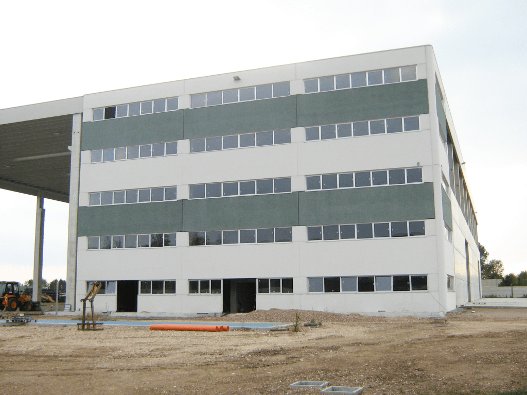 Il progetto riguarda la realizzazione di un fabbricato industriale, costituito da un capannone in cemento armato, all’interno del quale è stato ricavato un blocco pluripiano destinato a uffici e servizi per il personale. L’intervento comprende anche la sistemazione delle aree esterne, con superfici asfaltate per il transito dei mezzi, pavimentazioni in calcestruzzo per lo stoccaggio dei materiali, recinzioni per la delimitazione perimetrale e tutti gli impianti e sottoservizi necessari alla completa agibilità del complesso.
