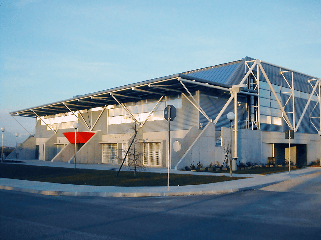 Il progetto riguarda la costruzione del Palazzetto dello Sport di Pasian di Prato, un impianto sportivo di rilevanza regionale e nazionale, progettato principalmente per incontri di basket e pallavolo. L’edificio è concepito come un grande basamento in cemento armato a pianta quadrata, che racchiude gli spazi di supporto, sopra il quale si sviluppa un involucro metallico a sezione trapezoidale, contenente la sala giochi e le tribune.