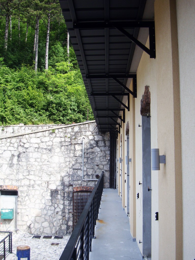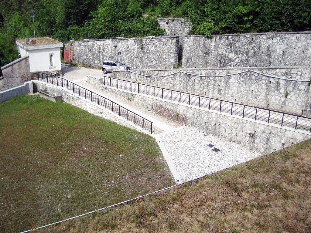 Il progetto ha previsto la creazione di un punto ristoro e di pernottamento con sei camere, ricavate nel fabbricato un tempo destinato all’alloggio ufficiali, mentre l’edificio originariamente destinato alle truppe è stato rifunzionalizzato per ospitare piccoli spazi cucina e servizi. Gli spazi esterni sono stati sistemati mediante pavimentazione dei piani di calpestio, messa in sicurezza di rampe e scale e l’installazione di un impianto di illuminazione, con la piazza d’armi trasformata in area ricreativa per pic-nic e arredo verde.
