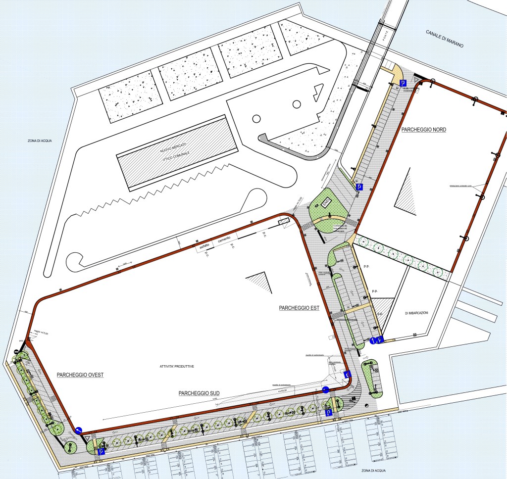 Il progetto nasce dall’esigenza di dotare gli insediamenti produttivi e commerciali legati alla pesca e alla nautica di aree a parcheggio adeguate, fondamentali per lo svolgimento delle attività, e di organizzare in modo funzionale i percorsi pedonali, colmando le carenze esistenti. Le opere hanno previsto la realizzazione di tre parcheggi, il completamento dell’impianto di pubblica illuminazione sull’intero comparto, la realizzazione della linea acquedotto e l’ampliamento del percorso pedonale lungo il molo sul lato sud dell’isola, in prossimità degli attracchi nautici.