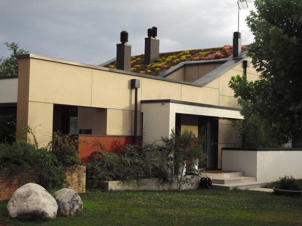 Il fabbricato è completato da impianti tecnologici ad alta efficienza, tra cui: pompa di calore reversibile a gas per il riscaldamento e il raffrescamento; ventilazione meccanica controllata con recupero di calore; impianto solare fotovoltaico e impianto di recupero acque piovane per il riuso in wc e per irrigazione del giardino.